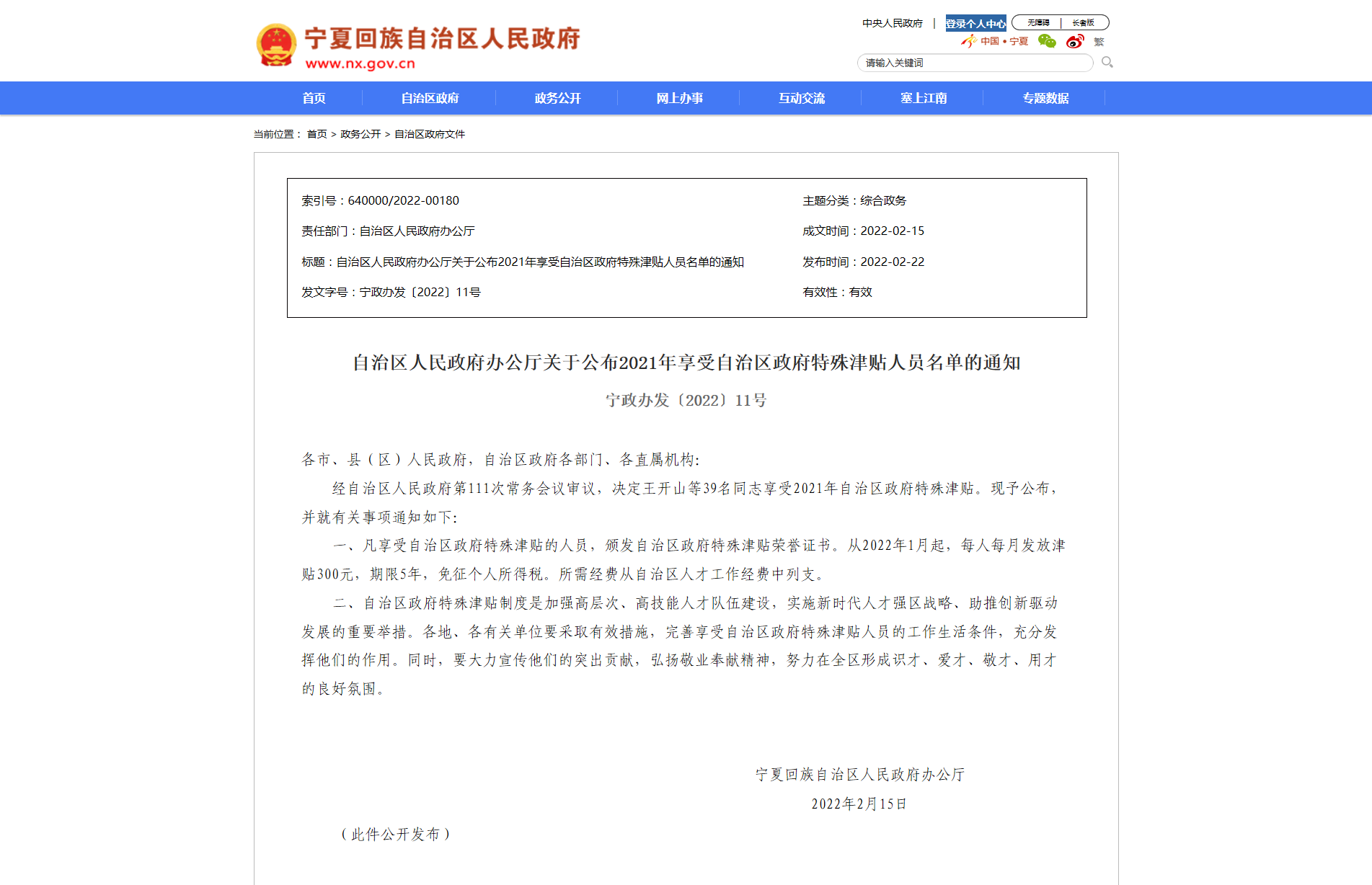 近日,自治区人民政府办公厅公布《2021年享受自治区政府特殊津贴人员名单(宁政办发〔2022〕11号)》,伟德国际victor·1946源自副总经理、技术专家李建炜获准享受2021年自治区政府特殊津贴。